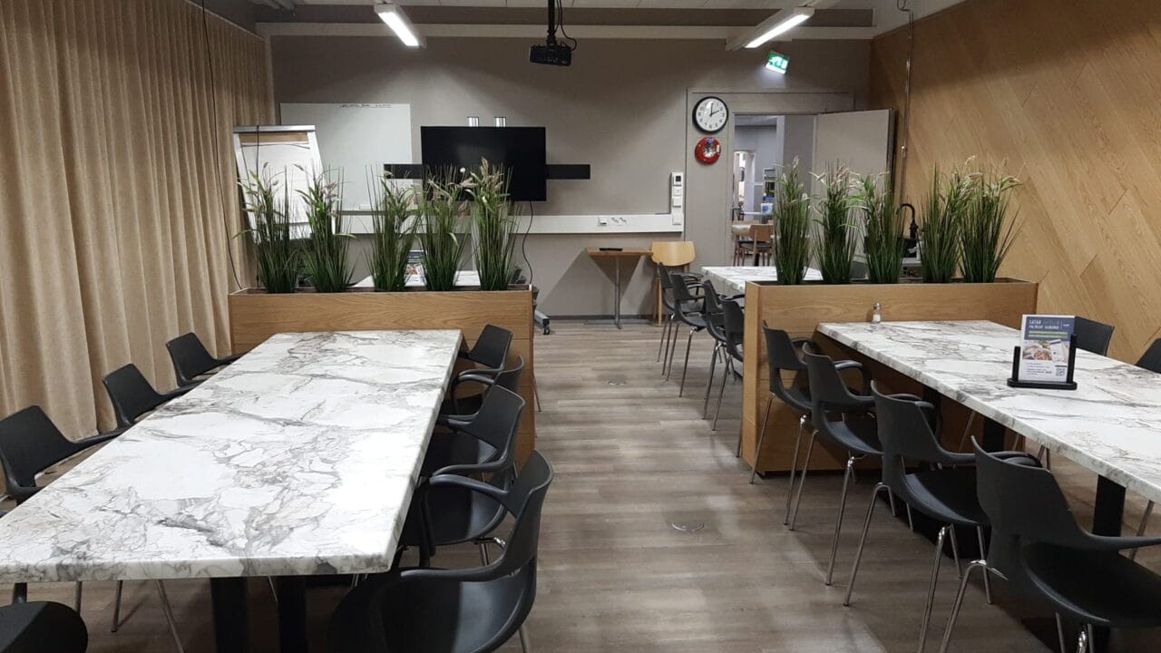 Tämä tilava kokoushuone sopii suuremmillekin ryhmille. Tila on avara ja helposti muunneltavissa, joten se sopii niin esitysten pitämiseen kuin työpajoihinkin. Tila on suunniteltu enintään 36 henkilölle ja varusteluina tilasta löytyy videotykki, näyttö ja fläppitaulu. Ravintolastamme saat tilaisuuteesi toiveidesi mukaisen kahvitarjoilun tai tarvittaessa purtavaa isompaankin nälkään. Kysy lisätietoja tilasta ja tarjoiluista ravintolastamme, p. xxx tai laita meille tiedustelusi alla olevan lomakkeen kautta.