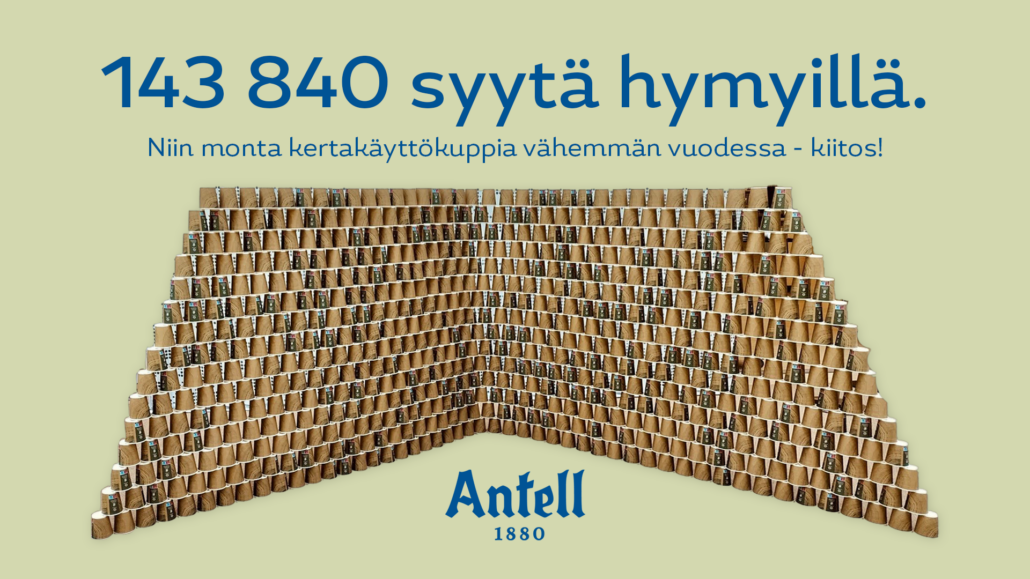 Viime vuoden tarkkojen lukujen perusteella vähensimme kertakäyttökuppien käyttöä peräti 143 840 kappaleella edelliseen vuoteen verrattuna. Tämä on valtava määrä.