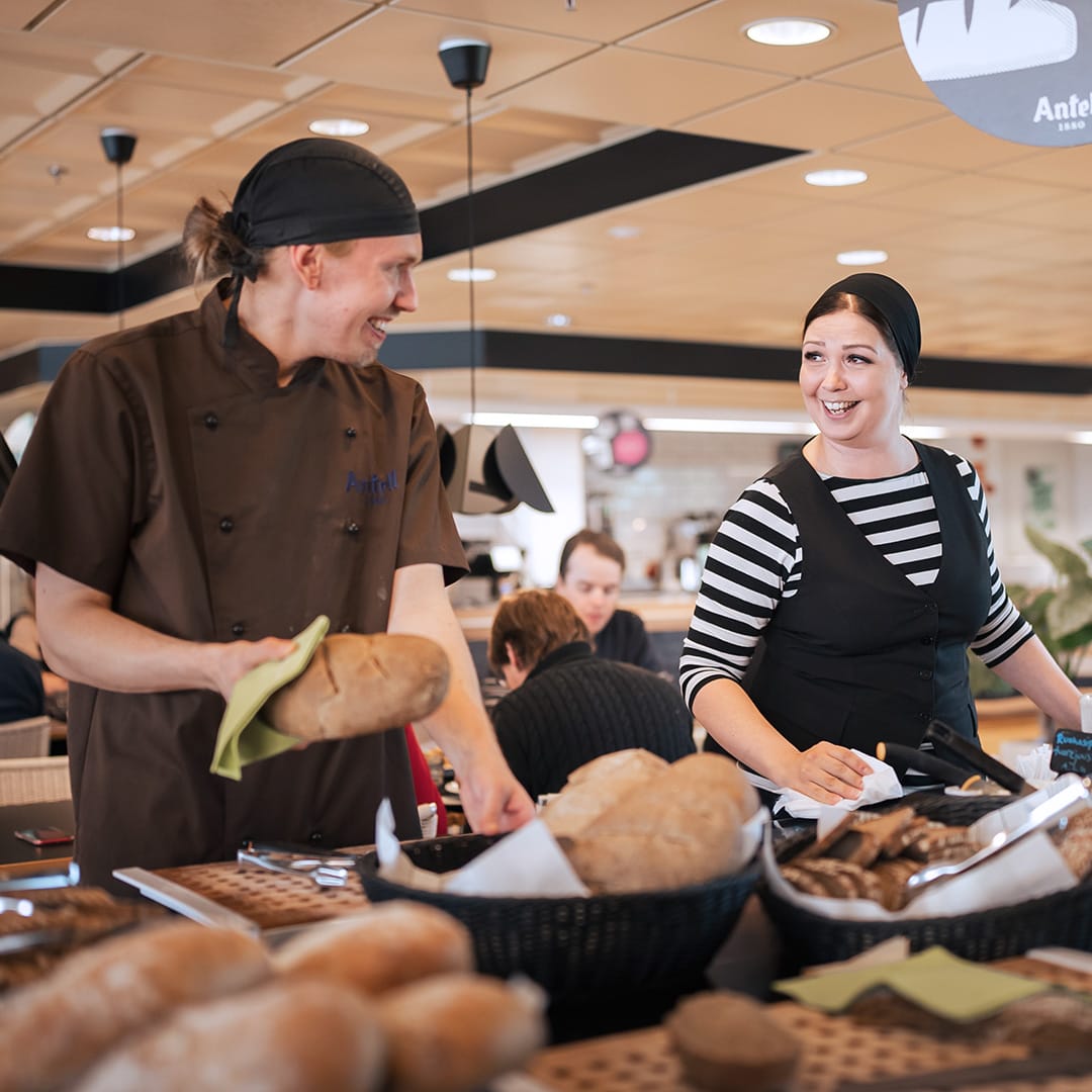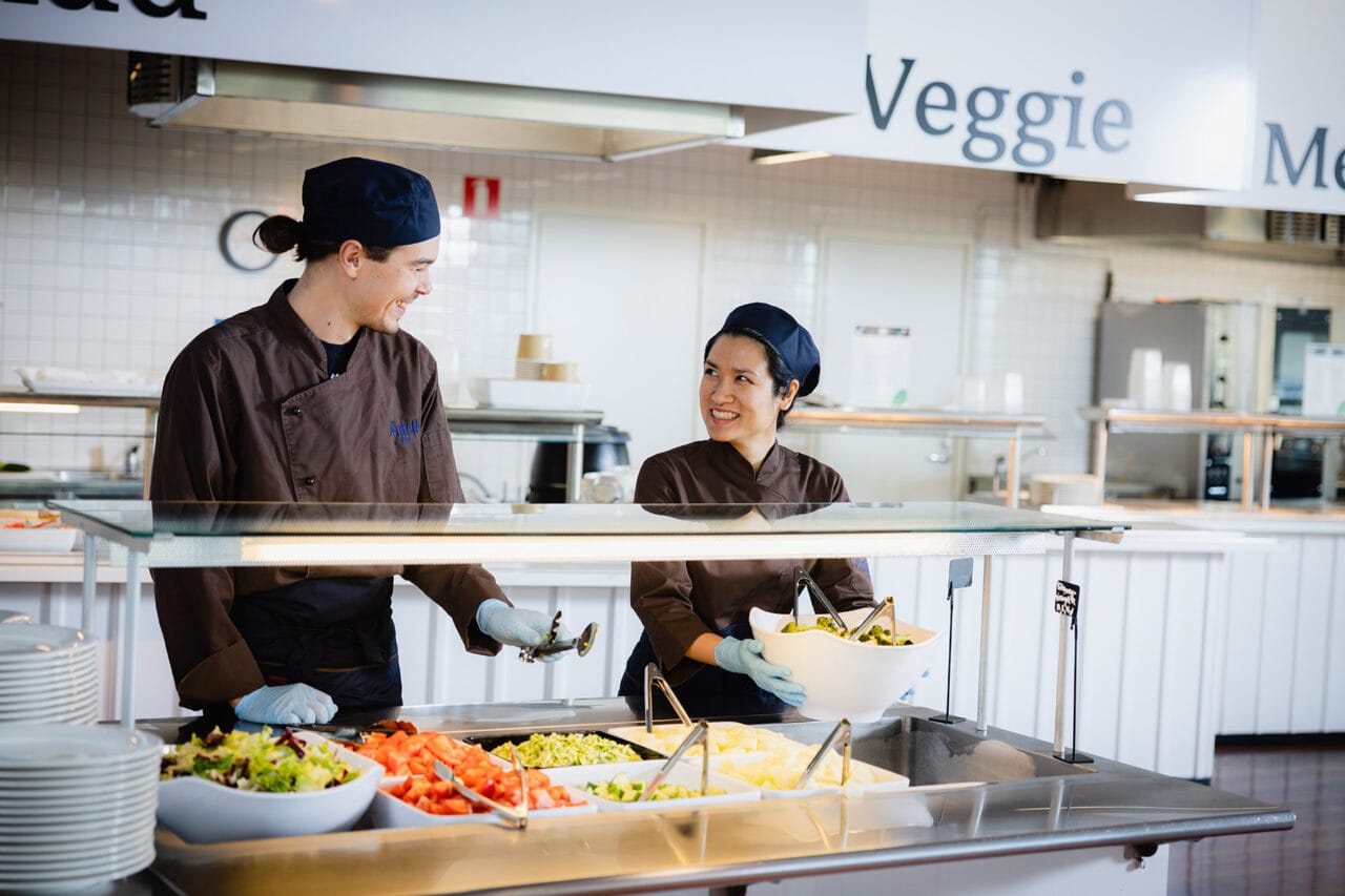 ”On ihanaa, kun ihmiset ovat samalla aaltopituudella. Olemme nauraneet, että henkilöstöravintola on ravintolamaailman erikoisjoukot. Laitteet ovat isoja ja ihmismäärät valtavia, mutta kaikesta selvitään yhdessä.”